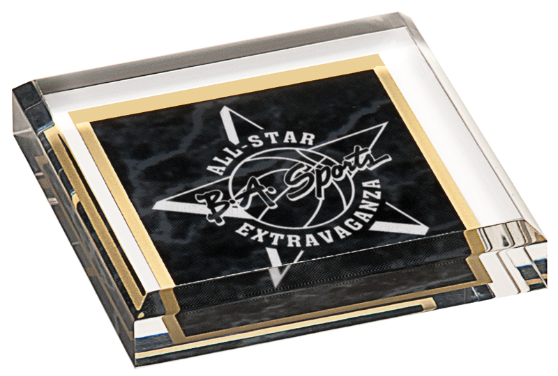 3.75” x 3.75” clear acrylic paperweight – BAC044