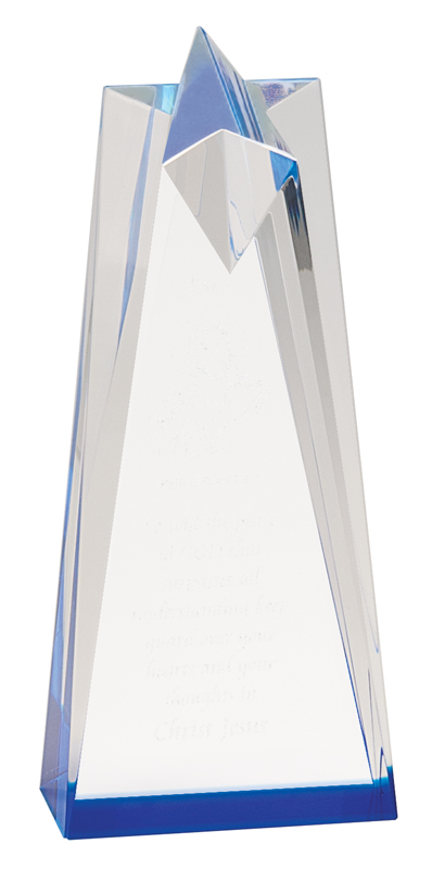 12” x 6.5” crystal with blue star – CRY274